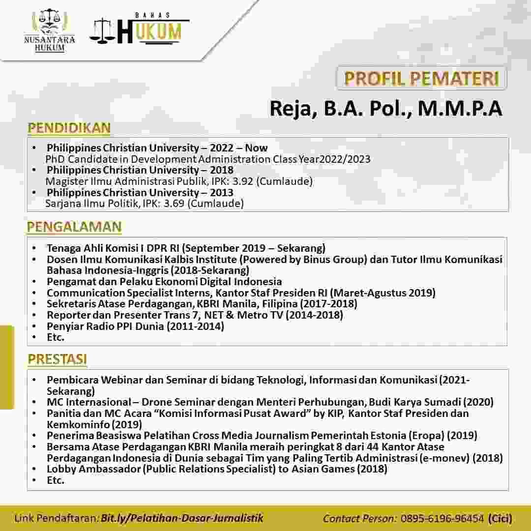 Narasumber: Reja,B.A.Pol.,M.M.P.A