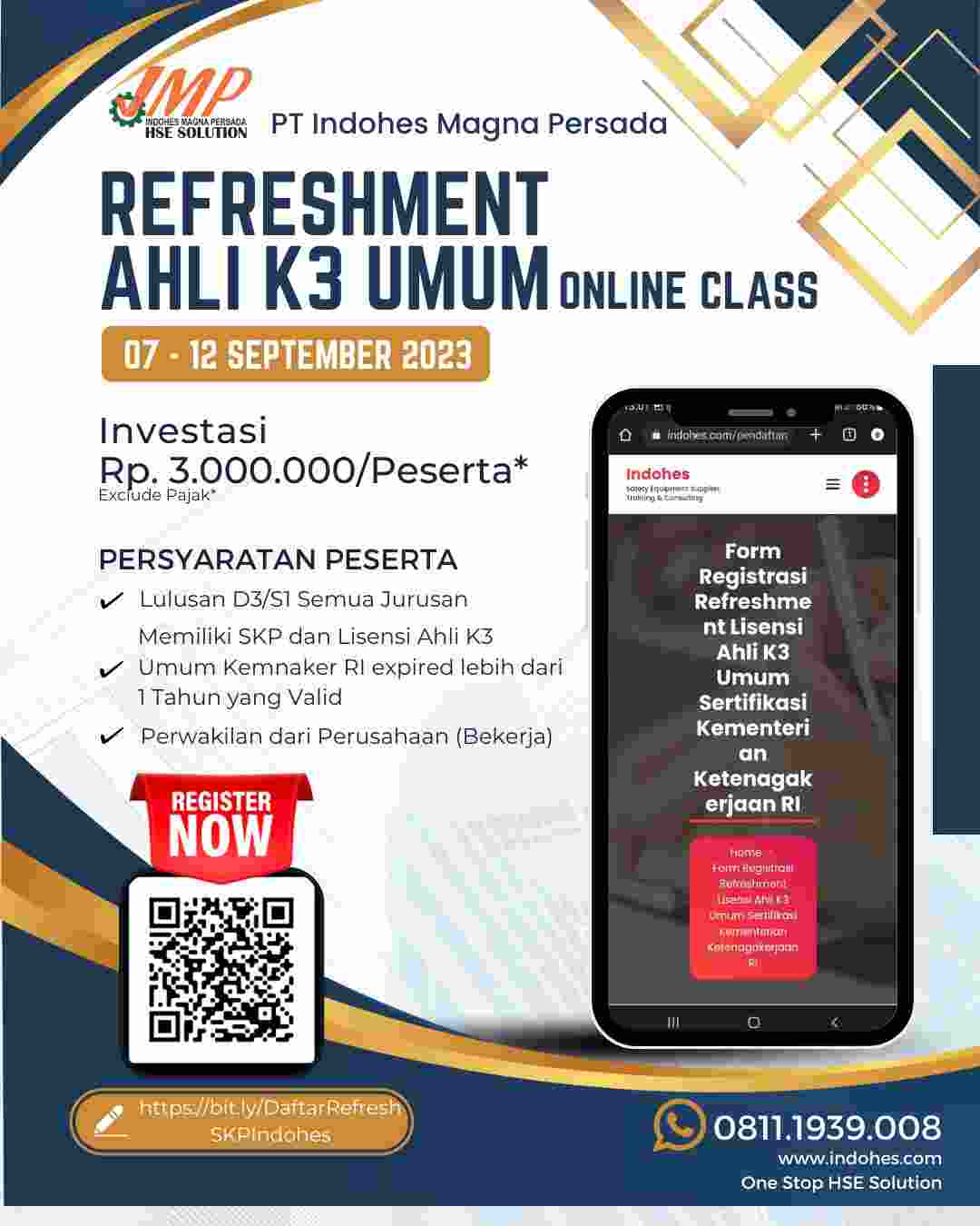 Jangan lewatkan kesempatan ini! Daftarkan diri Anda sekarang juga dan bersiaplah untuk menghadapi tantangan dunia K3 yang semakin kompleks!