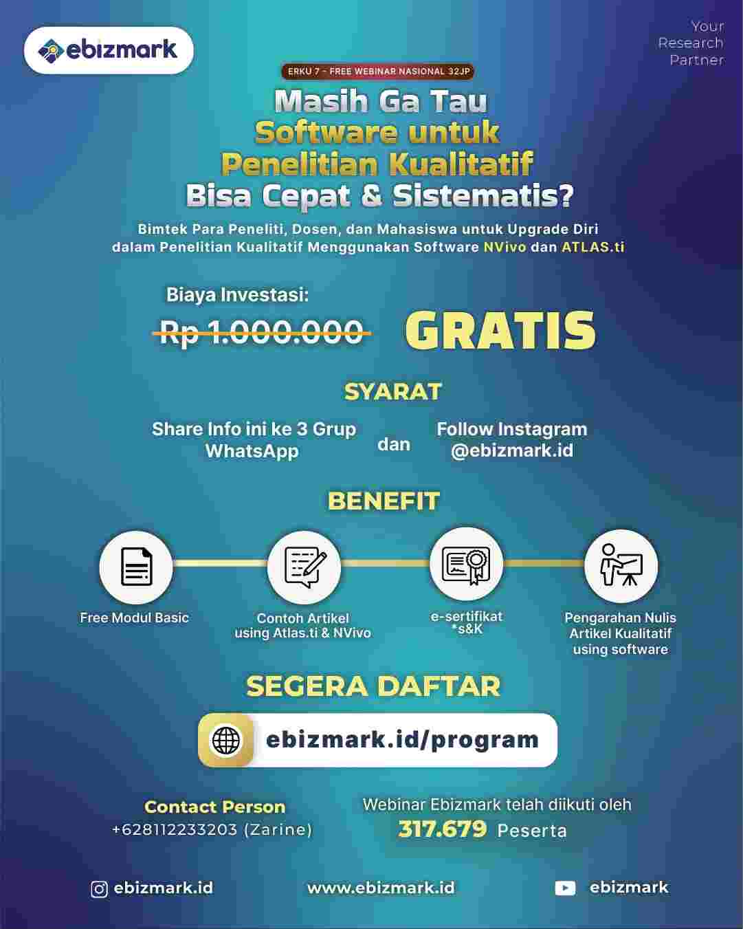 #Ebizmark #pelatihan #pelatihnkualitatif #pelatihanonline #bootcamp #penulisan #artikel #skripsi #tesis #disertasi #jurnal #kualititatif #kuantitatif #penelitian #jurnalsinta #jurnalnasional #publikasi #webinar #webinarnasional #webinargratis