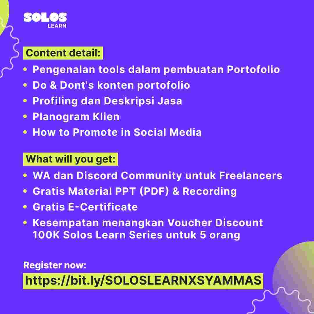 #Solos #soloslearn #PromosiPortofolio #SuksesMediaSosial #WebinarGratis #courses #freelancer